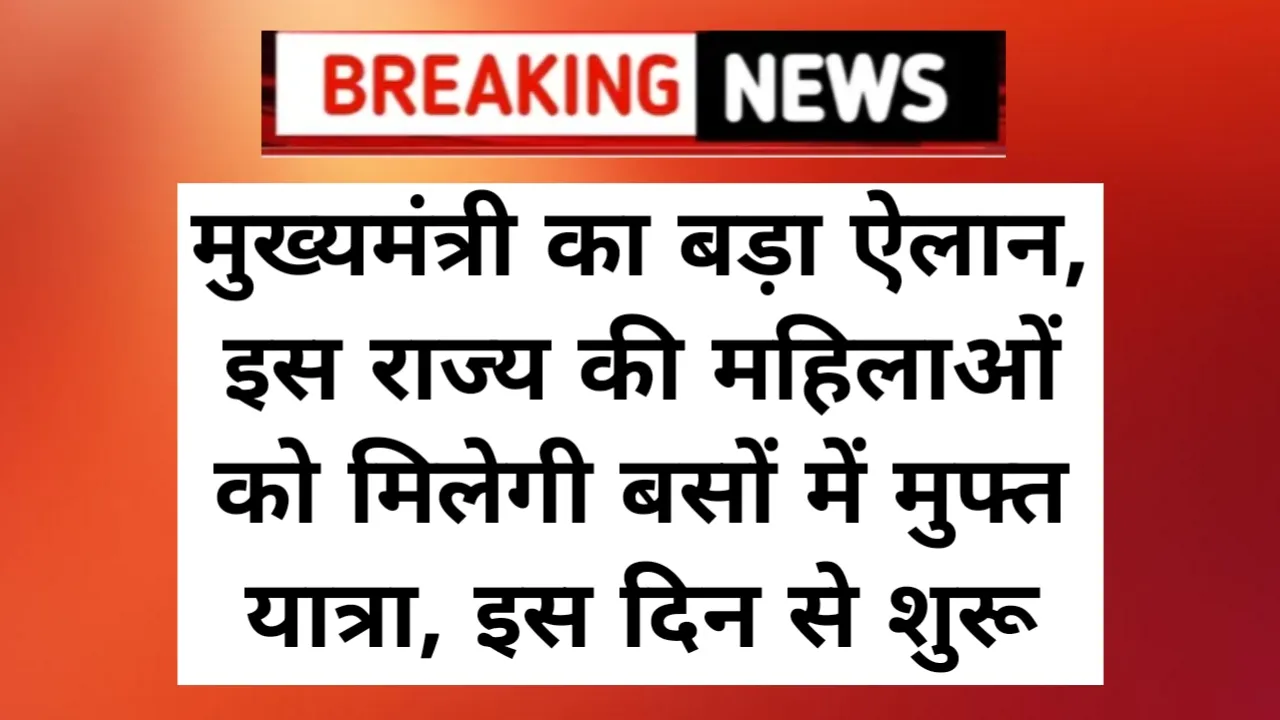 Free Bus Travel for Women: मुख्यमंत्री का बड़ा ऐलान, इस राज्य की महिलाओं को मिलेगी बसों में मुफ्त यात्रा, इस दिन से शुरू